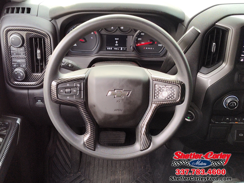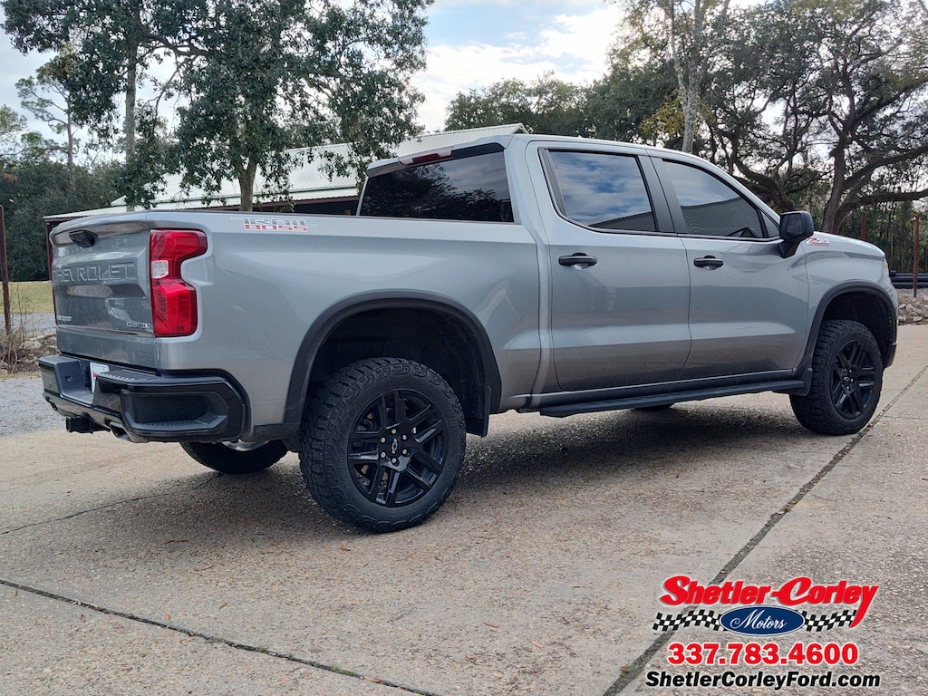 Look at this 2024 Chevrolet Silverado 1500 Custom Trail Boss. Its Automatic transmission and Gas V8 5.3L/325 engine will keep you going. This Chevrolet Silverado 1500 has the following options: WHEELS, 20 X 9 (50.8 CM X 22.9 CM) HIGH GLOSS BLACK PAINTED ALUMINUM, TIRE, SPARE 265/70R17SL ALL-SEASON, BLACKWALL (STD), STERLING GRAY METALLIC, STEERING COLUMN LOCK, ELECTRICAL, SEATS, FRONT 40/20/40 SPLIT-BENCH with covered armrest storage and under-seat storage (lockable) (STD), REAR AXLE, 3.23 RATIO, LPO, WHEEL LOCKS, SET OF 4 (dealer-installed), LPO, OFF-ROAD HIGH CLEARANCE STEPS (dealer-installed), LPO, ALL-WEATHER FLOOR LINERS, 1ST AND 2ND ROWS (includes Z71 logo on front mats),, and JET BLACK, CLOTH SEAT TRIM. Stop by and visit us at Shetler Corley Ford, 1623 North Parkerson, Crowley, LA 70526.