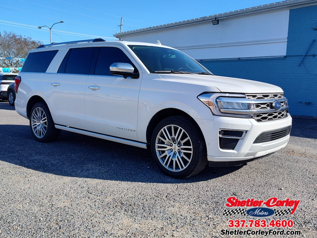 Look at this 2024 Ford Expedition Max Platinum. Its Automatic transmission and Twin Turbo Premium Unleaded V-6 3.5 L/213 engine will keep you going. This Ford Expedition Max features the following options: ENGINE: 3.5L ECOBOOST V6 (STD), Wireless Phone Connectivity, Window Grid Antenna, Wheels: 22 12-Spoke Polished Aluminum -inc: Continuous Controlled Damping (CCD), suspension road preview, Trunk/Hatch Auto-Latch, Trip Computer, Transmission: 10-Speed Automatic w/SelectShift, Transmission w/Driver Selectable Mode and Oil Cooler, Trailer Wiring Harness, and Tracker System. See it for yourself at Shetler Corley Ford, 1623 North Parkerson, Crowley, LA 70526.