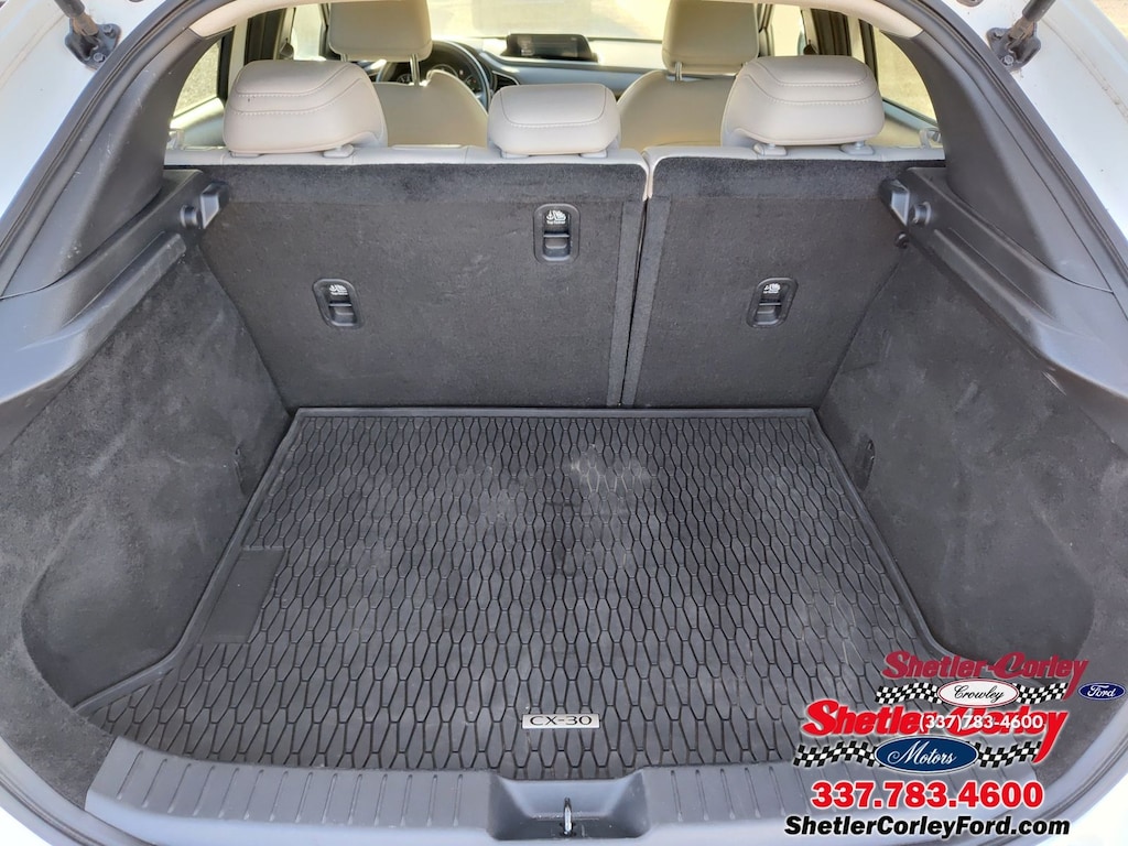 Come see this 2023 Mazda CX-30 2.5 S Preferred Package. Its Automatic transmission and Regular Unleaded I-4 2.5 L/152 engine will keep you going. This Mazda CX-30 features the following options: Wireless Phone Connectivity, Window Grid Antenna, Valet Function, Trip Computer, Transmission: 6-Speed SKYACTIV-Drive Automatic -inc: manual-shift mode and sport mode, Transmission w/Driver Selectable Mode, Sequential Shift Control and Oil Cooler, Torsion Beam Rear Suspension w/Coil Springs, Tire Specific Low Tire Pressure Warning, Tailgate/Rear Door Lock Included w/Power Door Locks, and Strut Front Suspension w/Coil Springs. See it for yourself at Shetler Corley Ford, 1623 North Parkerson, Crowley, LA 70526.